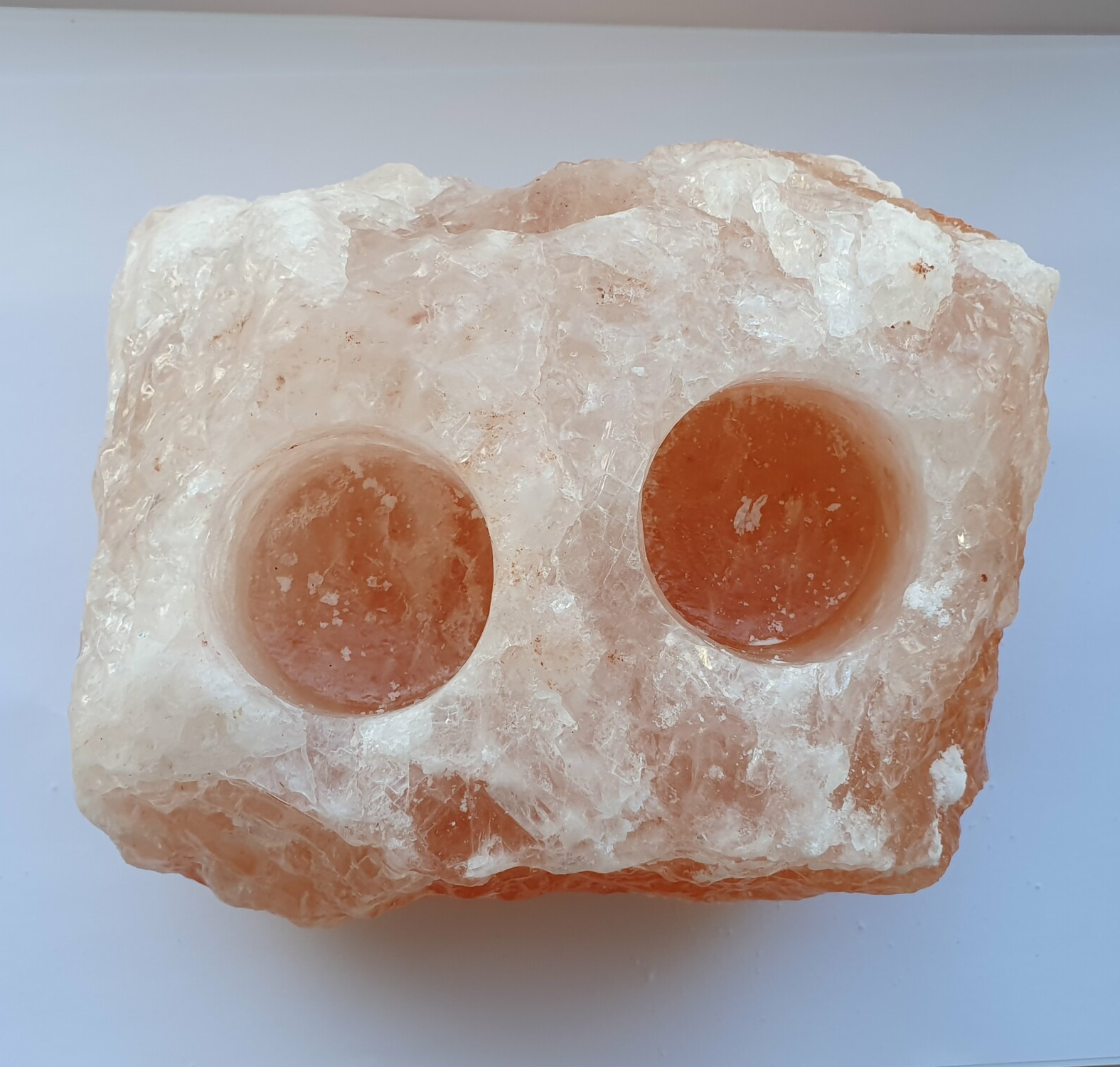 Himalaya zoutsteen waxinelicht 2 gaten.